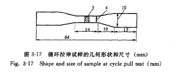 眾所周知,在較低的溫度或應應下促進陶瓷超塑性變形的方法之一就是細化晶粒尺寸,而納米周瓷則是利用減小晶粒尺寸后,無序晶界的體積分數會大幅度提高,有可能室溫脆性陶瓷將成為延性的。本研究的目的就是為了探求納米陶瓷室溫循環變形的可能行為和機理,通過熱壓方法( Fujidempace400kN熱壓爐)首先制制得得4mmX64mm×64mm的塊狀材料,然后加工成具有14mm標距長度的樣品,它們的幾何形狀和尺寸見圖3-17。