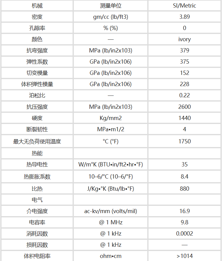氧化鋁陶瓷有不同含量成分的,例如95,96,99,995,998氧化鋁陶瓷,每種材料的技術(shù)參數(shù)以及性能都會(huì)有些差異,下面科眾陶瓷廠主要講解995氧化鋁陶瓷的技術(shù)參數(shù)。