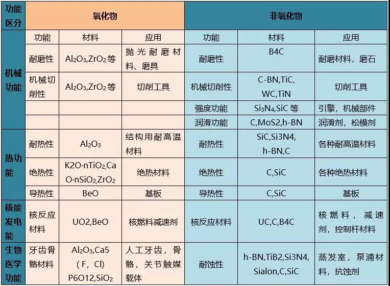 先進陶瓷應用性能分類
